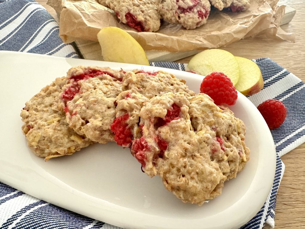 Bei diesem Rezept zuckerfreie Kekse für Kinder lässt sich ganz hervorragend das Obst austauschen. Den Apfel empfehle ich stets im Rezept zu belassen, denn er hilft dabei, dass der Teig gut bindet und macht die Kekse zusätzlich feucht. Banane und Himbeere lassen sich hervorragend durch andere beliebiges Obst ersetzen. Es können jegliche Beeren sein, aber auch Birne klappt hervorragend. Absolut beliebt bei Kindern ist übrigens auch unser schnelles Rezept Kinderkekse mit Banane.