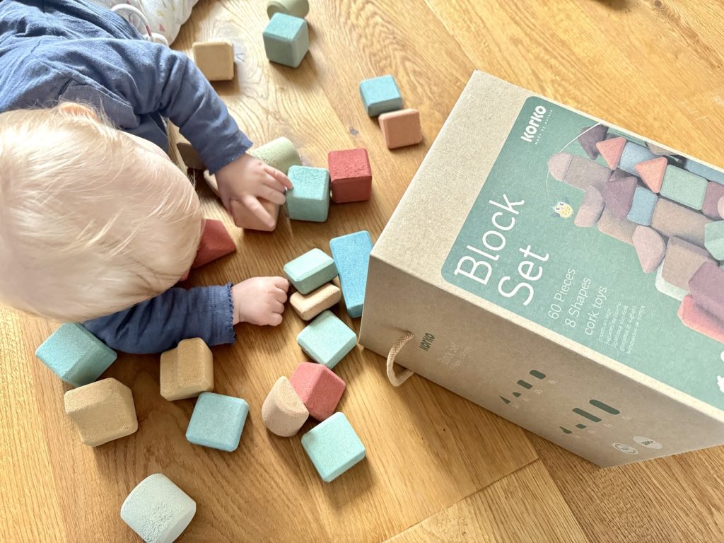 Mit den Bausteinen aus Kork kann ganz individuell gespielt werden und es ist somit ein absolut sinnvolles pädagogisches Spielzeug. Kinder lernen Ursache und Wirkung kennen, die Feinmotorik wird gefördert und es ist ein sehr fantasievolles Spielen möglich. Bausteine aus Kork lassen sich ganz wundervoll stapeln, aneinanderreihen und auf unterschiedlichste Art und Weise damit bauen. Und wenn das Gebaute einmal einstürzt, dann macht es viel weniger Krach als die herkömmlichen Bausteine für Kinder. Die Bausteine aus Kork mit den unterschiedlichen Farben und Formen eignen sich übrigens ab 18 Monate (Empfehlung von Korko). Unser Lifestylemagazin für Familien geht davon aus, dass Korkspielzeug erst ab 18 Monaten empfohlen wird, da Kinder Spielsachen vorher noch gerne in den Mund nehmen. Kork kann aufgrund seiner natürlichen Beschaffenheit beschädigt werden, was natürlich vermieden werden soll.
